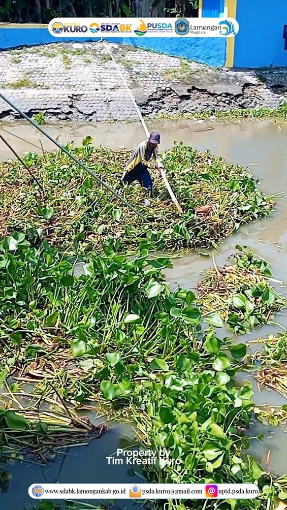 UPTD PSDA Kuro bersama TPOP Bengawan Jero melaksanakan kegiatan penggelontoran eceng gondok di Pintu Air Kuro sebagai upaya menjaga kelancaran aliran air dan mengoptimalkan fungsi bangunan pengatur air. Kegiatan ini difokuskan pada pembersihan gulma air yang berpotensi menghambat kapasitas aliran.