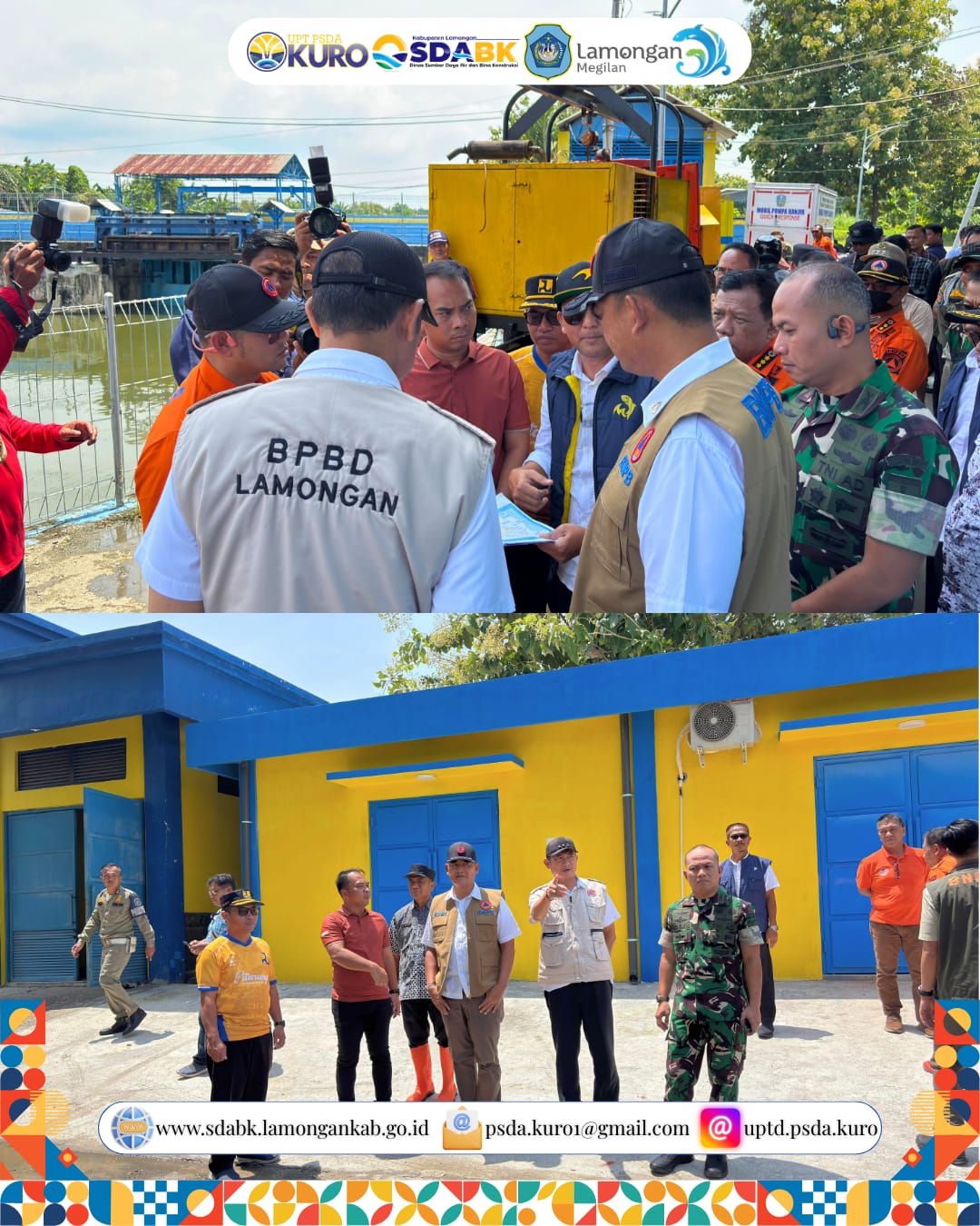 UPTD PSDA Kuro menerima kunjungan Deputi dari Badan Nasional Penanggulangan Bencana (BNPB) dalam rangka memastikan kesiapan dan optimalisasi operasional pompa banjir Kuro. Kunjungan ini merupakan bagian dari langkah sinergis dalam penanganan darurat banjir di wilayah rawan genangan, khususnya kawasan Bengawan Jero dan sekitarnya.