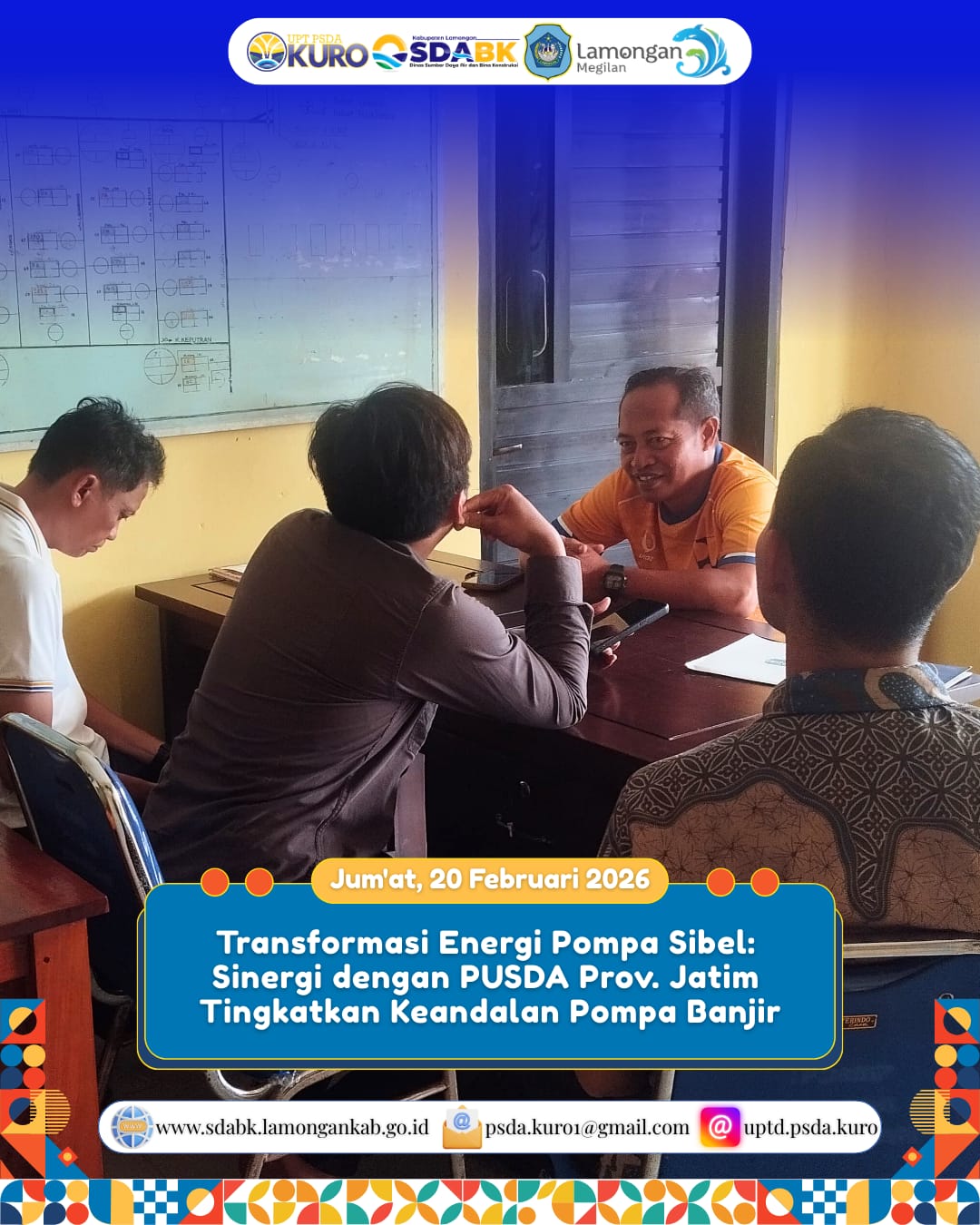 UPTD PSDA Kuro bersama Pusda Provinsi Jawa Timur melakukan langkah transformasi energi pada Pompa Sibel sebagai upaya meningkatkan keandalan sistem pengendalian banjir. Transformasi ini menjadi bagian dari komitmen dalam menghadirkan operasional pompa yang lebih efisien, responsif, dan berkelanjutan.